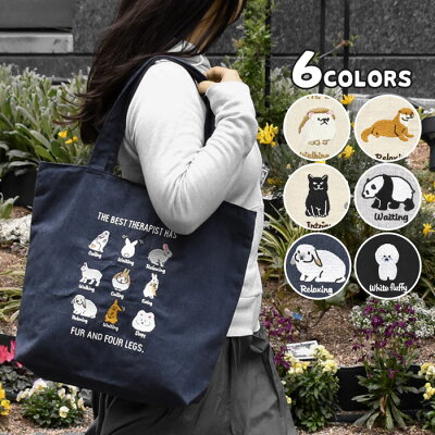 トートバッグ レディース/キャンバス アニマル柄 刺繍 トートバッグ 縦型 縦長 大きい 大きめ 大容量 A4 軽量 軽い おしゃれ オシャレ 可愛い かわいい 女性 女子 通学 通学用 学生 マザーズバッグ コットンキャンバス 帆布 布 猫 ハリネズミ カワウソ パンダ うさぎ 犬 r